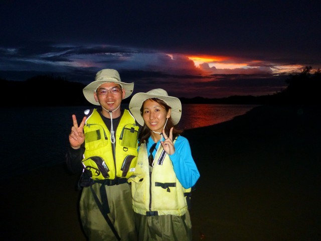 6月24日のトワイライト(サンセット)カヤック2時間30分コースです。干潮なので、地面がとても広いですね。