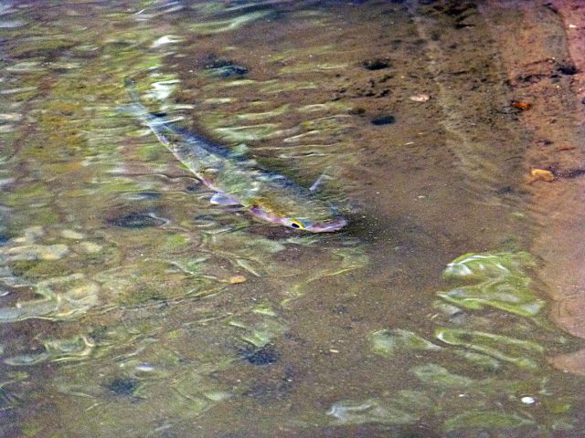 マングローブの木々の間や近いところ、ほんとうに浅いところで魚がのんびりしていることがあります。
