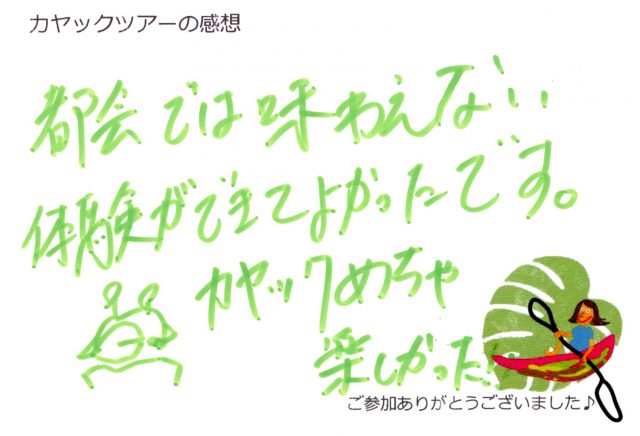 約1時間半の短いツアーでしたが、カヤックの経験とともに色々な体験ができてとても楽しめました!!本日はありがとうございました♡また機会があったらお願いします!