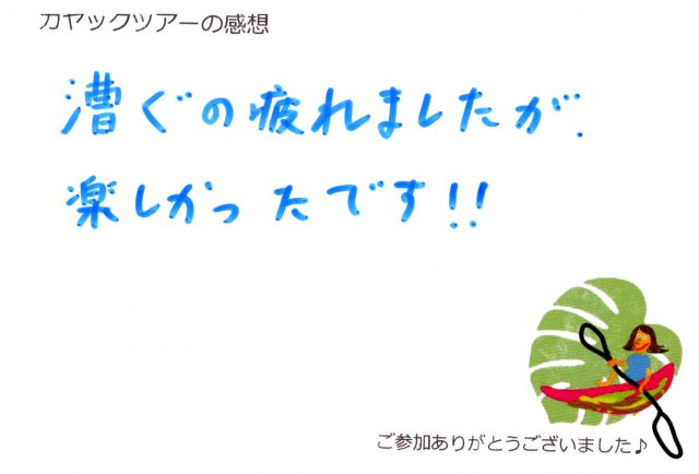 マングローブカヤックが楽しかった!カワセミが見れたことが嬉しかったです。うまくカヤックを操作できて、うなぎがまた楽しかった!