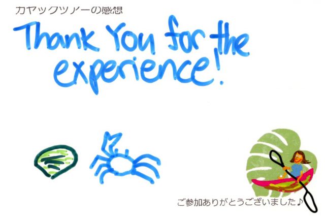 Thank you for a fun and interesting kayak tour. べんきょうになりました!!アリガトー!
