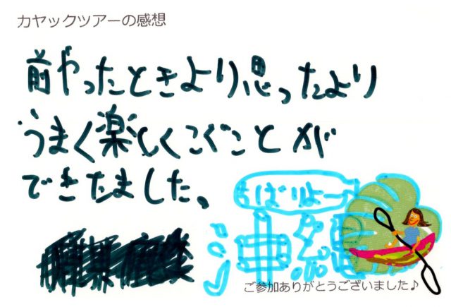 初めてのカヤックが、すごく楽しかったです。ありがとうございました。