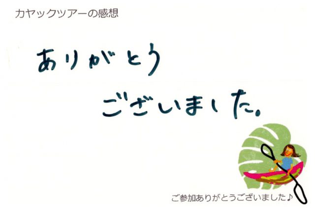 最初のカヤックの乗り方から、とてもおもしろかったです。こぎ方もおもしろかったです。あとエビをつかまえられて良かったし、カニも写真とかも、よく見てて楽しかったです。