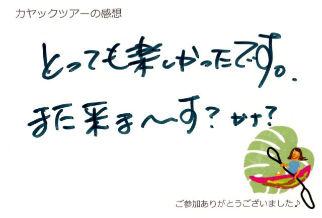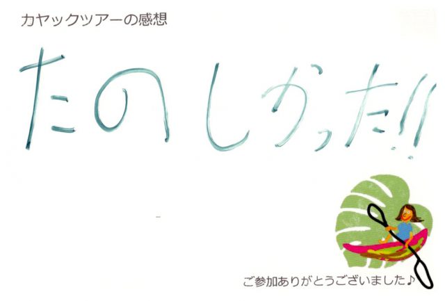 家族でのカヤック体験はすごく楽しかった!!色んな話が聞けて面白かった!!ありがとうございます。