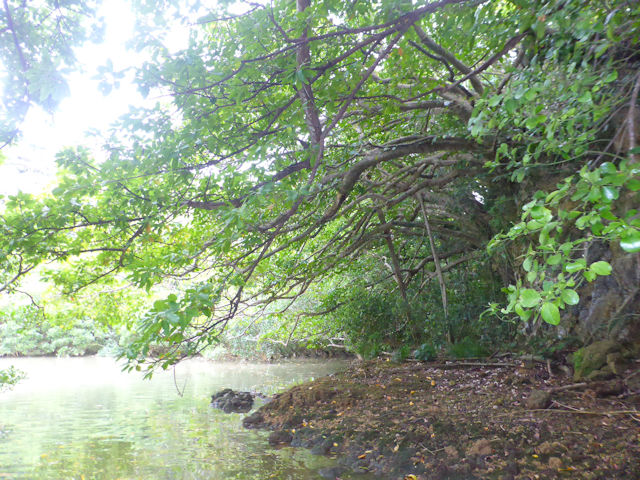 緑色っぽく見えているところは、満潮で水につかるところです。