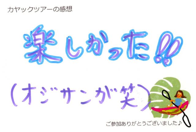 カヤックを、のんびりできて良かったです。とても楽しめました。ありがとうございました!