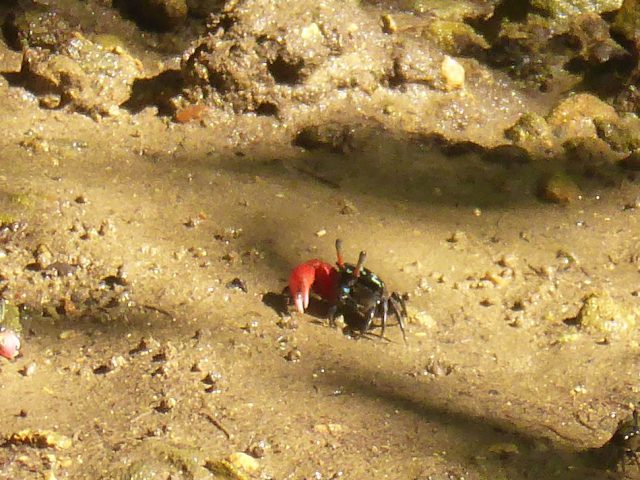 これはヒルギハシリイワガニ、食べているエサが違うので、シジミの脅威ではありません。