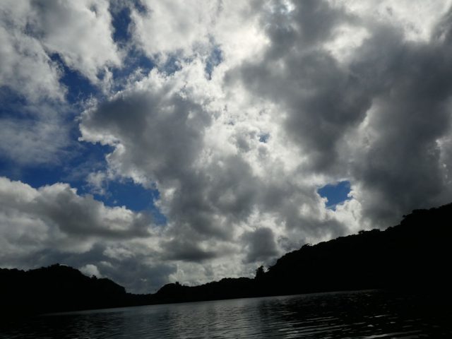 カヤックツアーで傘をさしているなんて、ちょっと楽しい光景です。