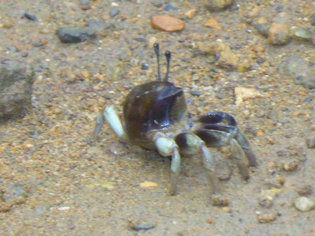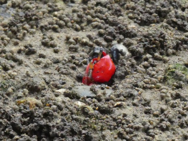 これから潮が満ちてくるので、ヤエヤマシオマネキは閉店の準備です。