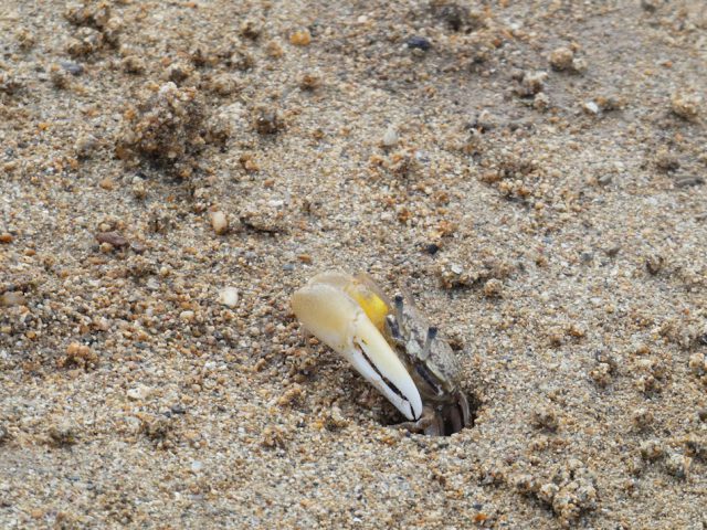 潮が引いているので、パドル練習するあたりにもシオマネキが出てきています。
