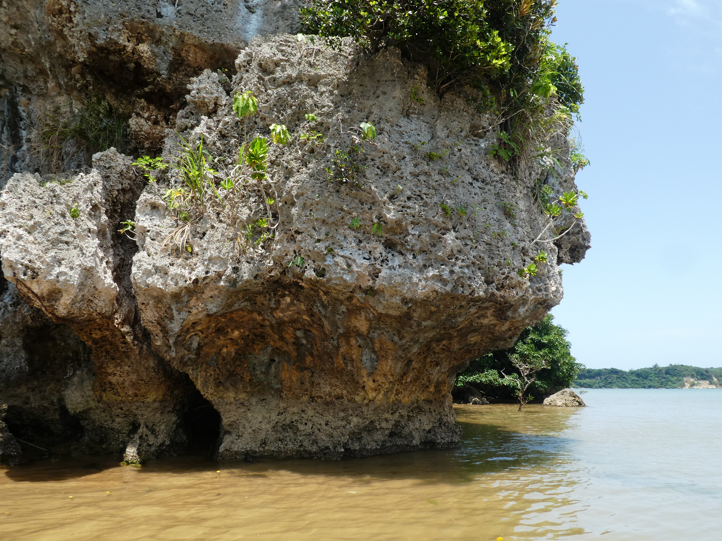 きのこ岩も見えています。遠くで白波が見えているのはリーフエッジです。サンゴの外縁部です。