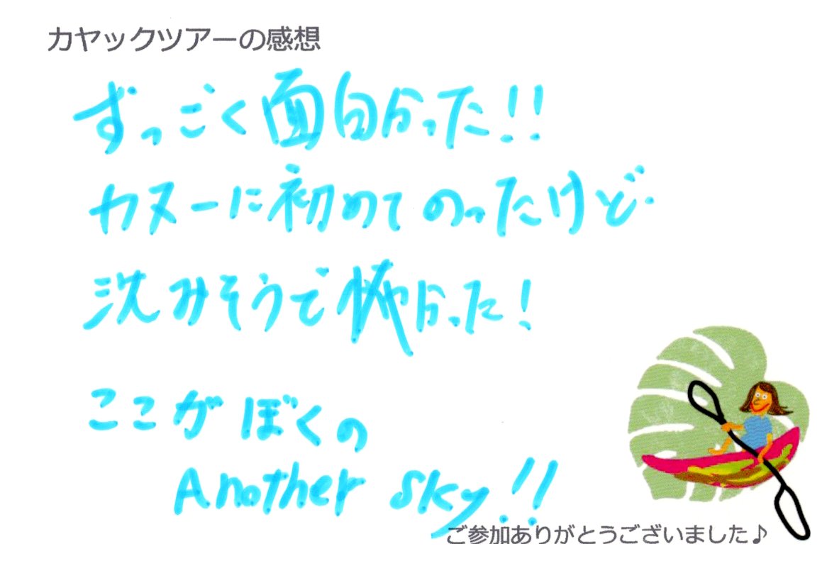 すっごく面白かった!!カヌーに初めてのったけど、沈みそうで怖かった!ここがぼくのAnother Sky!!