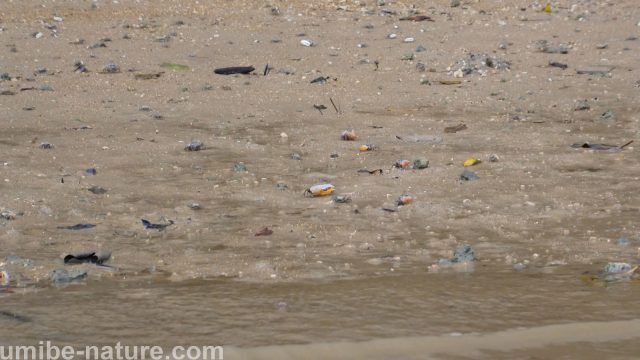 これはヒメシオマネキです。ハサミの下側がオレンジ色です。