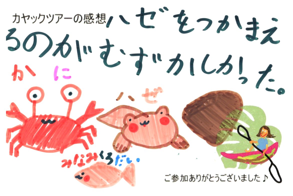 とっても楽しかったです ハゼつかまえられた!! 2026年2月4日午前 とっても楽しかったです ハゼつかまえられた!! 楽しかった ハゼをつかまえるのがむずかしかった。 かに ハゼ みなみくろだい たのしかった かい えび かに みなみくろだい はぜ カヤックをおりてマングローブの中を歩くのが とても楽しかった!
