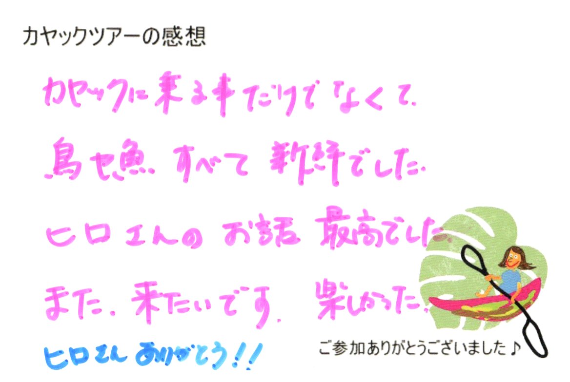 カヤックに乗る事だけでなくて、鳥や魚、すべてが新鮮でした。
