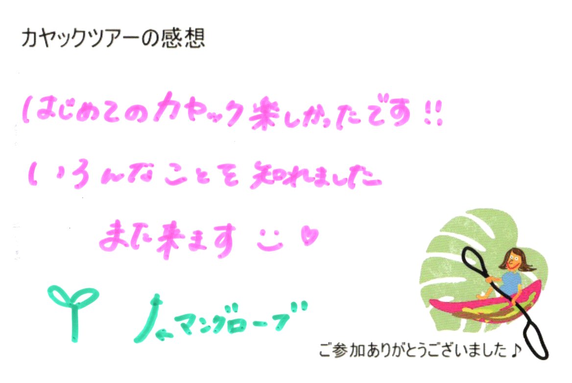 楽しかったなあ! また来ます!! 2026年2月23日午前 楽しかったなあ! また来ます!! はじめてのカヤック楽しかったです!! いろんなことを知れました また来ます☺ « マングローブってすごい!! 2026年2月23日午前 2月で寒いかな?と思いましたが、 2026年2月23日午後 »