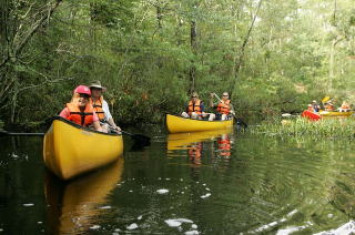 カヌーに乗って自然を満喫。楽しそうですね。エンジンボートでは入っていけないようなところへも行くことが出来ます。