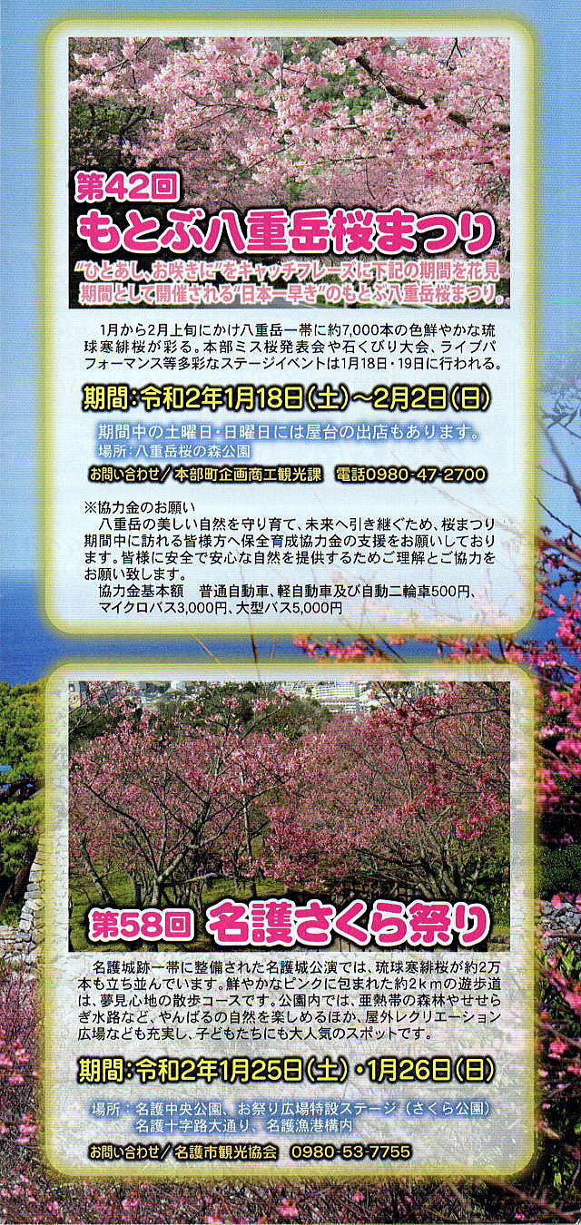 | 主催 今帰仁グスク桜まつり実行委員会 0980-56-2256 |